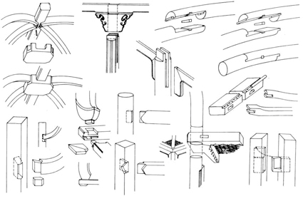 關(guān)于榫卯的種類,有很多,就其使用的部位、功能和形態(tài)而言,大體可分為明榫、暗榫、套榫、夾頭榫、插肩榫、抱肩榫、鉤掛榫、燕尾榫、楔釘榫及走馬銷等。