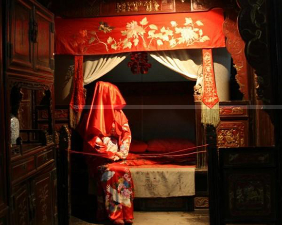新婚之夜,在鬧洞房之前,首先要為新人布置好洞房。在黃歷中,我們會(huì)看到“安床”一詞,那么何為安床呢?其實(shí)“安床”是一個(gè)結(jié)婚術(shù)語(yǔ),指嫁娶前男方安置新人房中的床。一般是在選定吉日后,在婚前幾天由“一世好運(yùn)的男士”把新床移到適當(dāng)?shù)奈恢谩N恢靡滥信p方的八字以及神位等決定,而安床的住置亦不可與桌柜、方櫥的尖角相對(duì)。然后,再由一位“兒孫滿(mǎn)堂的女士”負(fù)責(zé)鋪床,并擺上各式喜果、蓮子、百合、花生、紅棗等很多吉利的東西在新床上,喻意百年好合,早生貴子!安床之后,禁讓自己或其他成年人坐臥,寡婦、失婚者尤忌;但可先讓嬰孩在床上玩耍,寓意添丁發(fā)財(cái)。