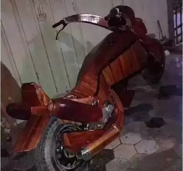 不過,用紅木做的摩托車應該沒什么卵用!不信?你放路邊停一晚上試試?明早一定沒了!